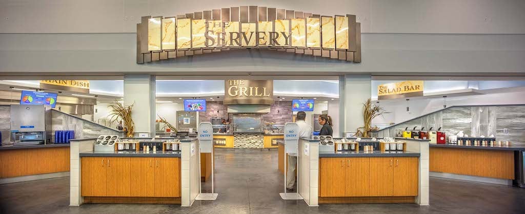 IMGアカデミーでの食事は3食とも寮の斜め向かいに位置するキャンパスセンターのカフェテリアで提供されます。朝食はスクランブルエッグやソーセージ、パンとヨーグルト、フルーツ、シリアルなどから選択。昼・夕食はさらに選択肢が増え、新鮮で多種にわたる野菜やハム・チーズからメインの牛肉、豚肉、鶏肉、魚などバランスの取れた食事が様々な味付けで提供され、また日替わりでクラムチャウダーなどのスープも用意され長期滞在でも飽きにくい工夫がなされています。このほかピザやうどん・そばなどの購入も可能です。